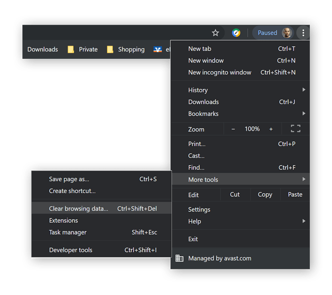 - Launch Chrome and click the three dots in the top-right corner. Select More tools and then Clear browser data.