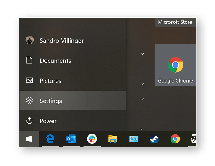 1.Click on the Start button and select Settings.