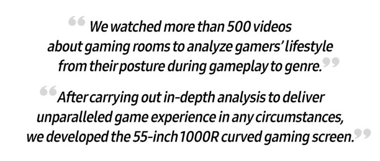 Kim explored more than 500 videos on gaming room decorating and game-related documentaries to learn how gamers decorate and organize their space. “To develop an unprecedented 55-inch 1000R curved gaming screen, I watched videos that carry gamers’ daily life and analyzed their lifestyle,” he said.